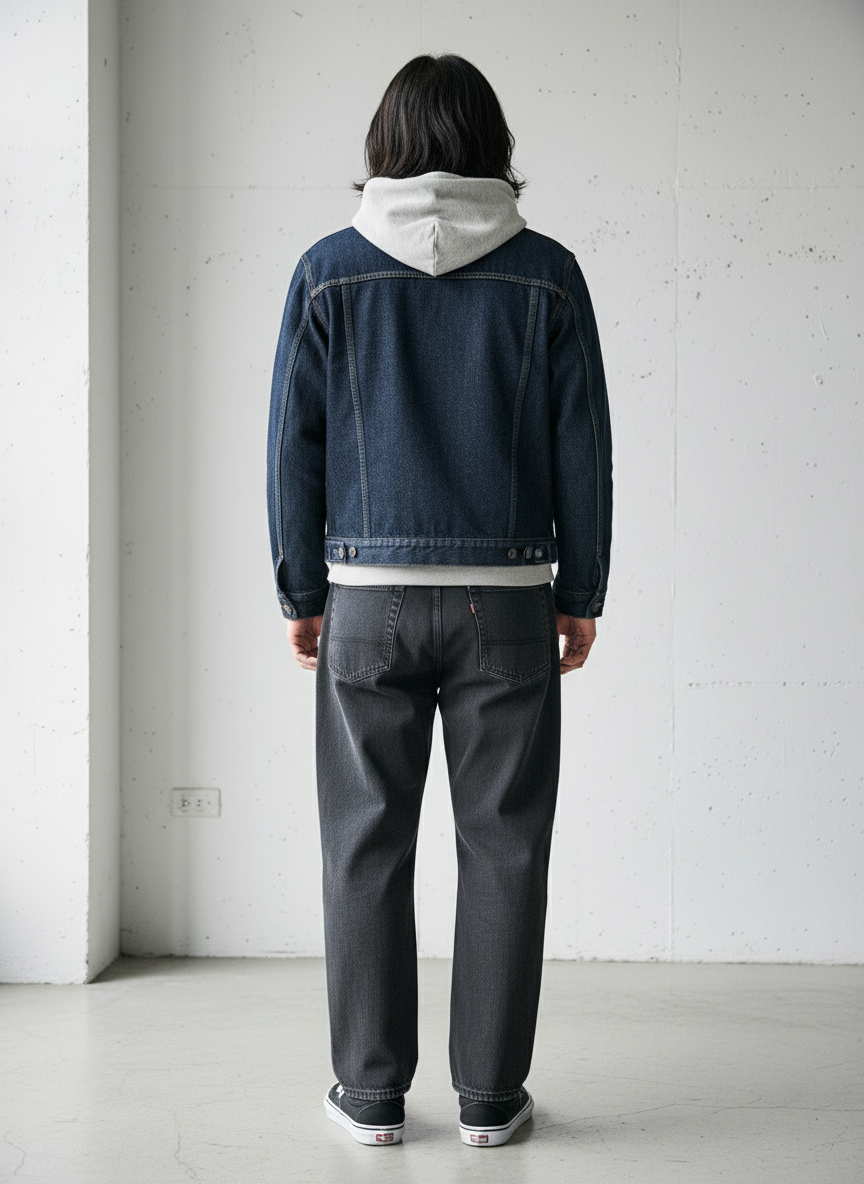 100%コットンの厚手デニムに水洗い加工を施し、柔らかさと自然な色落ちを両立。