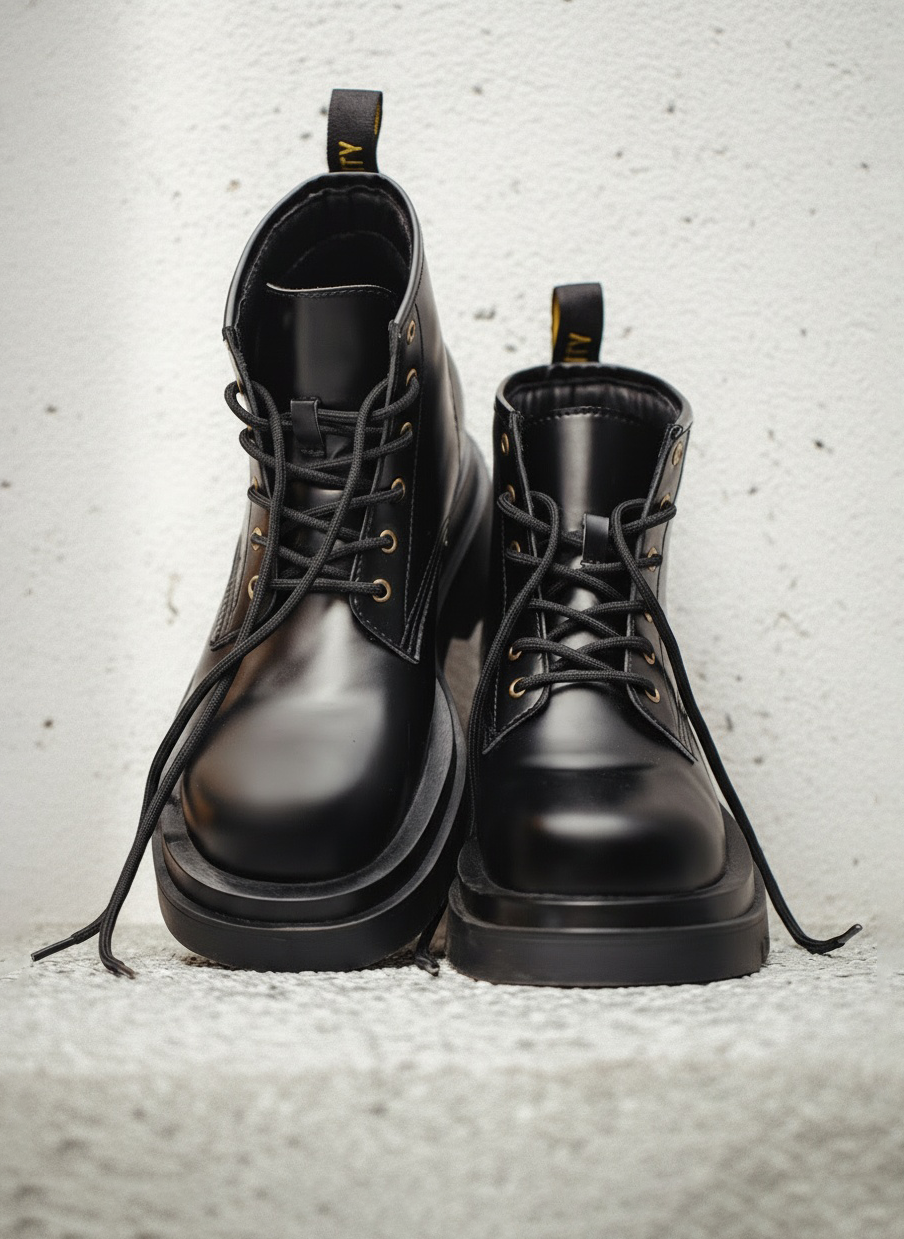High-Top Black Leather Derby Shoes|BM-SH-12